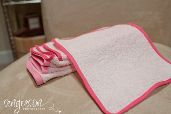 DIY Wash Cloth. So again, I went to BRU (Babies R Us for short), and I found that baby wash clothes were super expensive. Note to manufacturers: Just because you dyed something blue or pink does not mean you can jack up the prices 1000%. I think they realize that this day and age, people are having less babies - but spending MORE on their precious little ones. And they are making a profit. Maybe I should go into the baby accessory business!