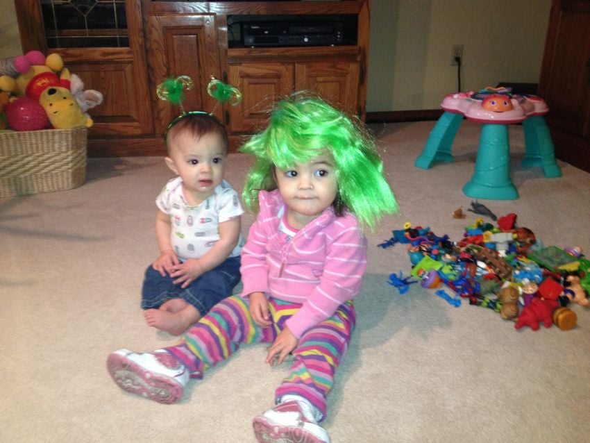 Ending this post with yet another phone photo of the girls (they are my world - husband included). Grandma decided to make them festive for St. Patty's day.